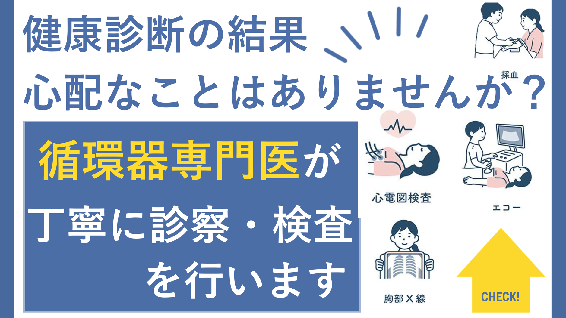 胸の痛み、動悸、息切れといった症状や、健康診断で何らかの異常が見つかった場合は、お早めに循環器内科までご相談ください。